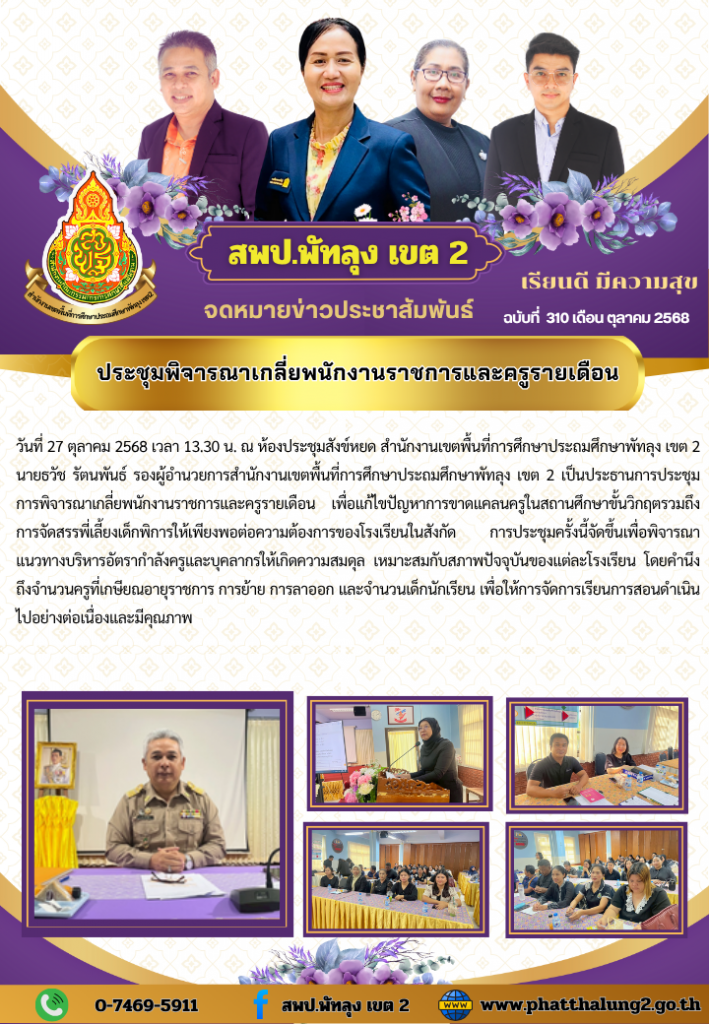- ประกาศรับสมัครคัดเลือกบุคคลเพื่อจัดจ้างเป็นครูผู้สอนภาษาอังกฤษสังกัดสำนักงานเขตพื้นที่การศึกษาประถมศึกษาพัทลุง เขต 2