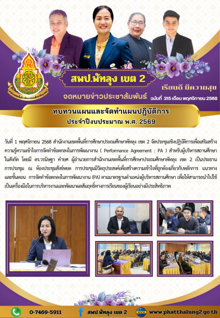 - ประกาศผู้ชนะการเสนอราคา โครงการเช่าใช้บริการสัญญาณอินเทอร์เน็ตประจำปีงบประมาณ พ.ศ.2569 ของสำนักงานเขตพื้นที่การศึกษาประถมศึกษาพัทลุง เขต 2 และโรงเรียนในสังกัด 114 โรงเรียน โดยวิธีเฉพาะเจาะจง