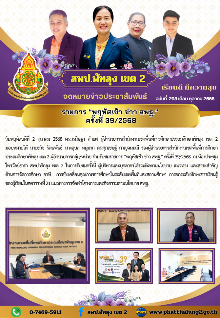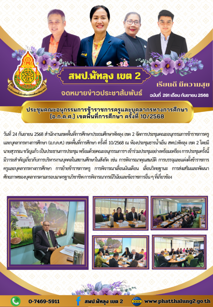 - ประกาศผลการพิจารณาย้ายข้าราชการครูและบุคลากรทางการศึกษา ตำแหน่งครู่ผ่านระบบ TRS ประจำปี พ.ศ.2568 ครั้งที่ 2 สังกัด สพป.พัทลุง เขต 2