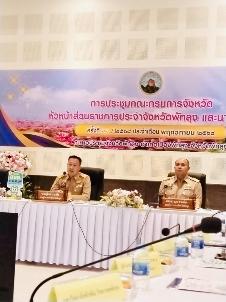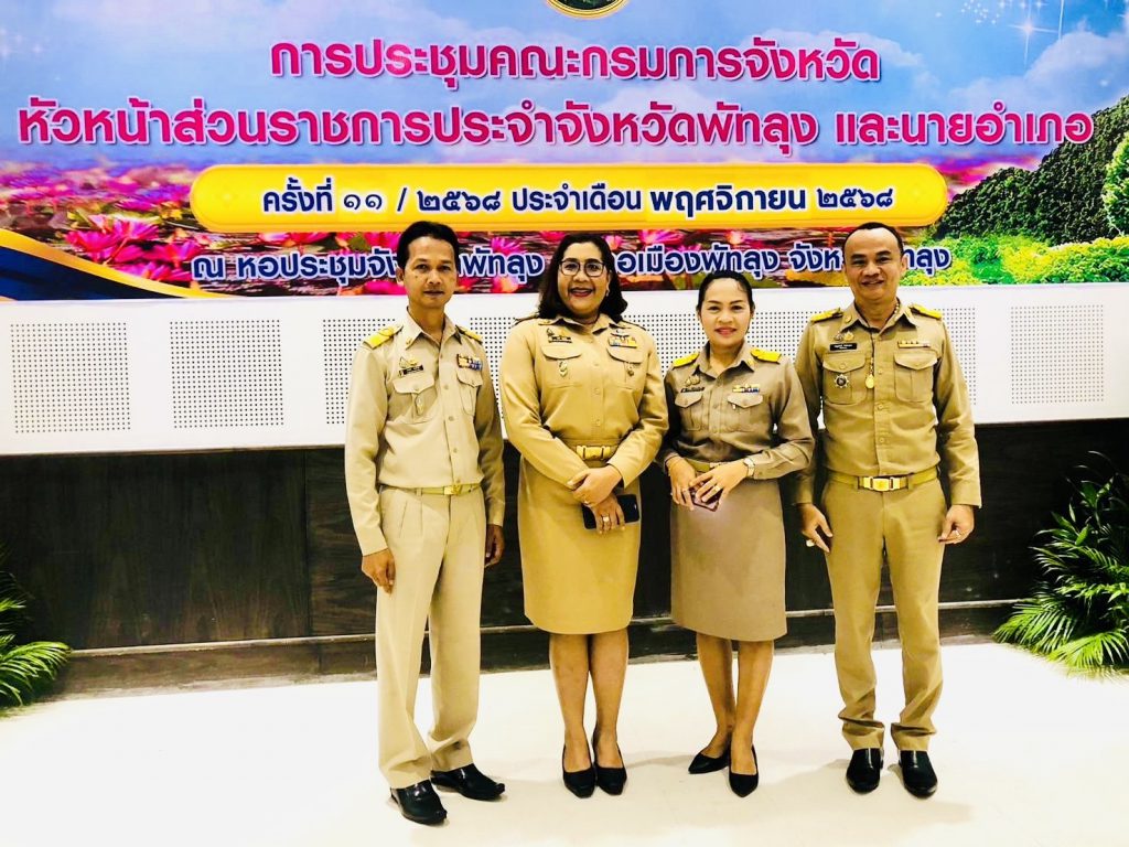 วันที่ 26 พฤศจิกายน 2568 ณ หอประชุมจังหวัดพัทลุง นางอุบล หนูมาก รองผู้อำนวยการสำนักงานเขตพื้นที่การศึกษาประถมศึกษาพัทลุง เขต 2 เข้าร่วมการประชุมหัวหน้าส่วนราชการประจำจังหวัดพัทลุง นายสุจินต์ วาจากิจ รองผู้ว่าราชการจังหวัด รักษาราชการแทนผู้ว่าราชการจังหวัดพัทลุง เป็นประธานการประชุม