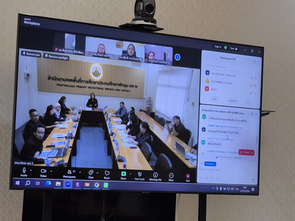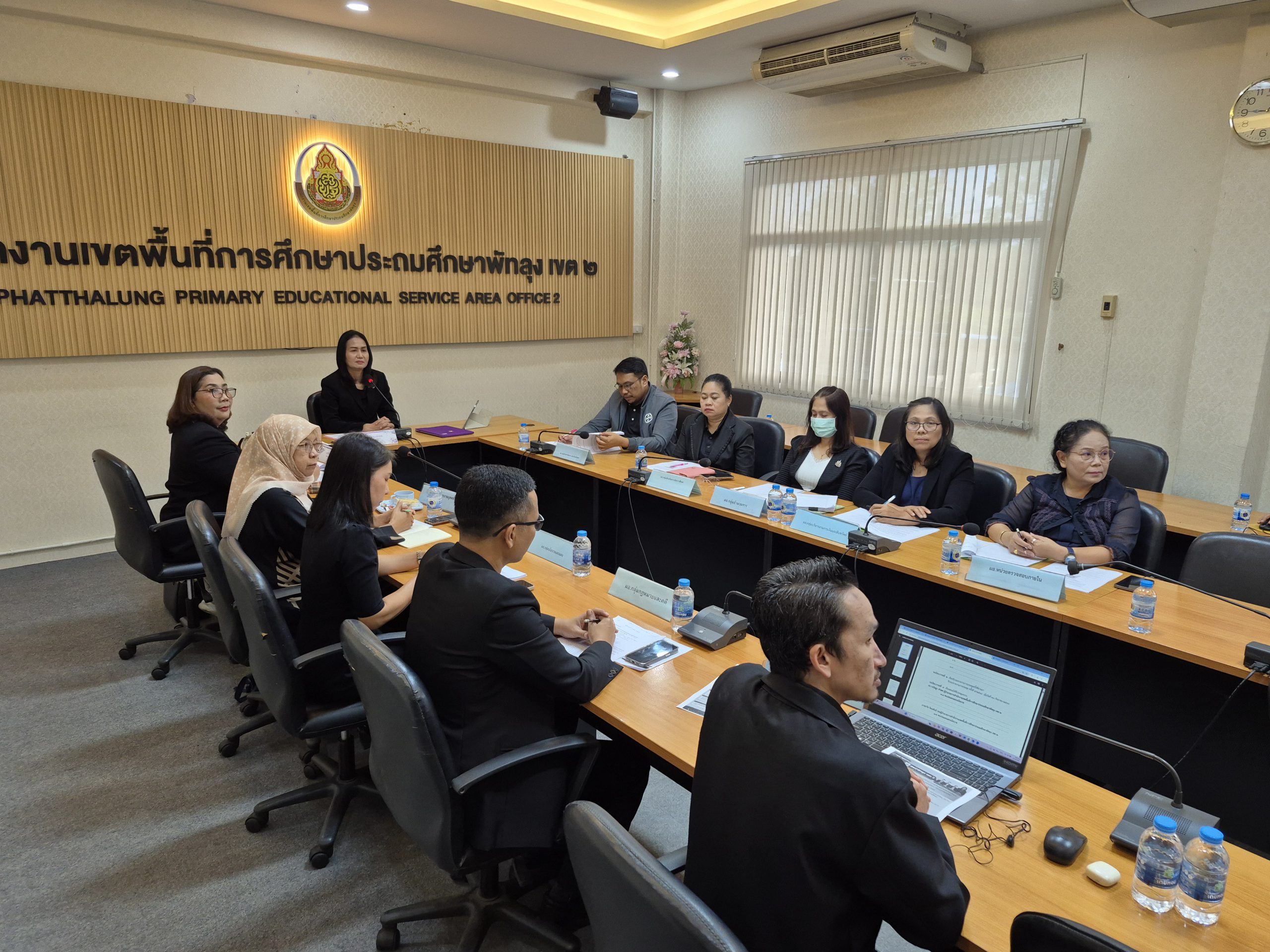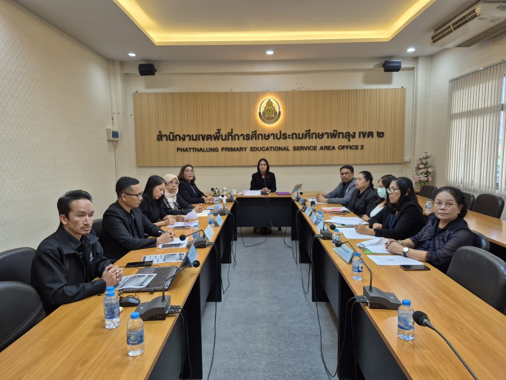 สำนักงานเขตพื้นที่การศึกษาประถมศึกษาพัทลุง เขต 2 จัดประชุมผู้บริหารสถานศึกษาในสังกัด จำนวน 114 โรงเรียน ผ่านระบบ VDO Conference เพื่อขับเคลื่อนการดำเนินงานตามนโยบายกระทรวงศึกษาธิการและสำนักงานคณะกรรมการการศึกษาขั้นพื้นฐาน (สพฐ.) สู่การปฏิบัติในระดับสถานศึกษาอย่างเป็นรูปธรรม โดยมี ดร.วรนิษฐา คำยศ ผู้อำนวยการสำนักงานเขตพื้นที่การศึกษาประถมศึกษาพัทลุง เขต 2 เป็นประธานการประชุม พร้อมด้วย นางอุบล หนูมาก รองผู้อำนวยการสำนักงานเขตพื้นที่การศึกษาประถมศึกษาพัทลุง เขต 2 ผู้อำนวยการกลุ่ม/หน่วย ณ ห้องประชุมไพรวัลย์ธารา สพป.พัทลุง เขต 2