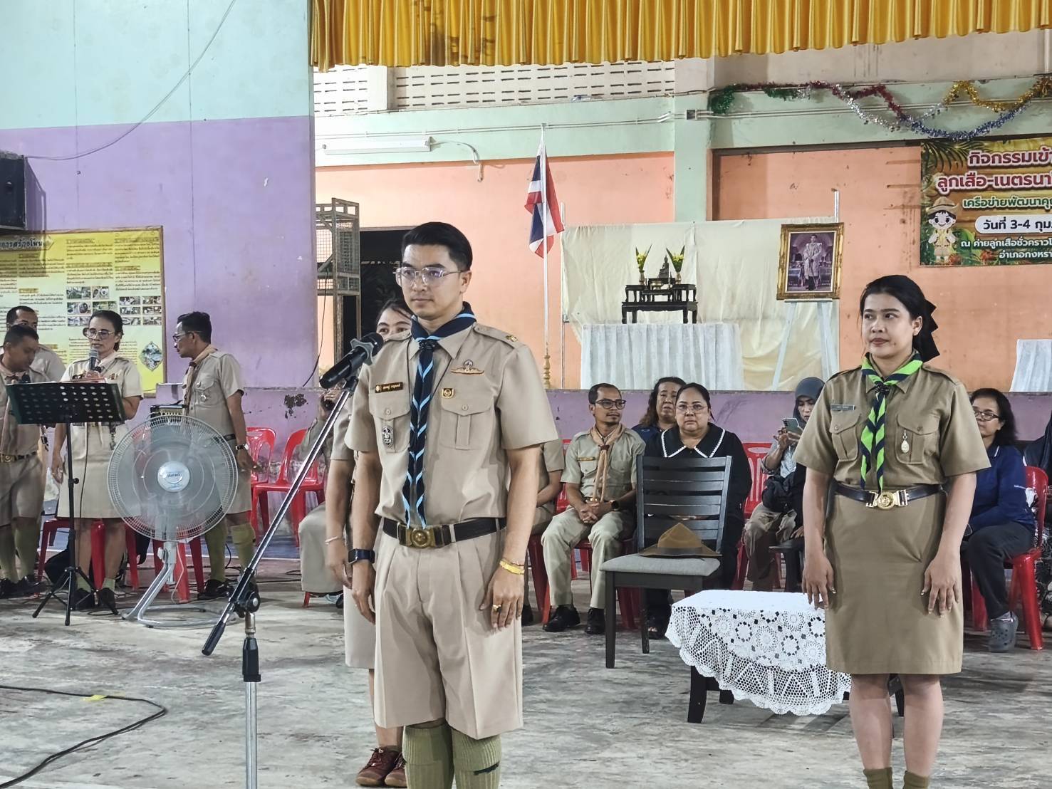 โดยได้รับเกียรติจาก ดร.ศุภเชษฐ์ กาญจนมณี รองผู้อำนวยการสำนักงานเขตพื้นที่การศึกษาประถมศึกษาพัทลุง เขต 2 เป็นประธานในพิธีชุมนุมรอบกองไฟ พร้อมให้โอวาทแก่ลูกเสือ–เนตรนารี เน้นย้ำการปลูกฝังคุณธรรม จริยธรรม การมีจิตอาสา และการอยู่ร่วมกันอย่างมีความสุข