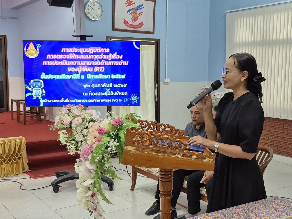 วันที่ 12 กุมภาพันธ์ 2569 สำนักงานเขตพื้นที่การศึกษาประถมศึกษาพัทลุง เขต 2 จัดการประชุมตรวจให้คะแนนการประเมินความสามารถด้านการอ่านของผู้เรียน (Reading Test : RT) ชั้นประถมศึกษาปีที่ 1 ประจำปีการศึกษา 2568 เพื่อให้การดำเนินงานเป็นไปด้วยความเรียบร้อย โปร่งใส และได้มาตรฐานตามแนวทางที่สำนักงานคณะกรรมการการศึกษาขั้นพื้นฐาน (สพฐ.) กำหนด โดยมี ดร. ศุภเชษฐ์ กาญจนมณี รองผู้อำนวยการสำนักงานเขตพื้นที่การศึกษาประถมศึกษาพัทลุง เขต 2 เป็นประธาน ณ ห้องประชุมสังข์หยด