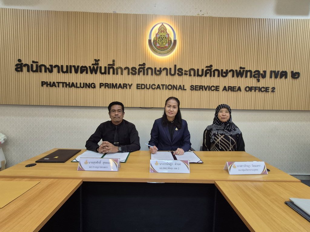 วันที่ 12 กุมภาพันธ์ 2569 สำนักงานเขตพื้นที่การศึกษาประถมศึกษาพัทลุง เขต 2 ดำเนินการจัดทำข้อตกลงในการปฏิบัติงานในหน้าที่ (Performance Agreement : PA) สำหรับผู้อำนวยการสถานศึกษา เพื่อกำหนดเป้าหมาย ตัวชี้วัด และแนวทางการพัฒนาคุณภาพการศึกษาให้เป็นรูปธรรม สอดคล้องกับบริบทของสถานศึกษาและนโยบายของสำนักงานคณะกรรมการการศึกษาขั้นพื้นฐาน โดยมี ดร.วรนิษฐา คำยศ ผู้อำนวยการสำนักงานเขตพื้นที่การศึกษาประถมศึกษาพัทลุง เขต 2 เป็นประธาน
