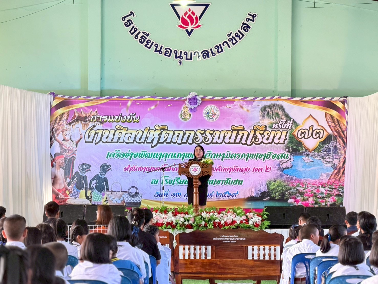 วันที่ 13 กุมภาพันธ์ 2569 สำนักงานเขตพื้นที่การศึกษาประถมศึกษาพัทลุง เขต 2 ร่วมพิธีเปิดการแข่งขันงานศิลปหัตถกรรมนักเรียน ครั้งที่ 73 ปีการศึกษา 2568 ของเครือข่ายพัฒนาคุณภาพการศึกษามิตรภาพเขาชัยสน ณ โรงเรียนอนุบาลเขาชัยสน อำเภอเขาชัยสน จังหวัดพัทลุง โดยมี นางอัมพิกา อักษรสว่าง รองผู้อำนวยการสำนักงานเขตพื้นที่การศึกษาประถมศึกษาพัทลุง เขต 2 เป็นประธานในพิธี พร้อมด้วยผู้บริหารสถานศึกษา คณะครู บุคลากรทางการศึกษา นักเรียน และผู้เกี่ยวข้องเข้าร่วมอย่างพร้อมเพรียง
