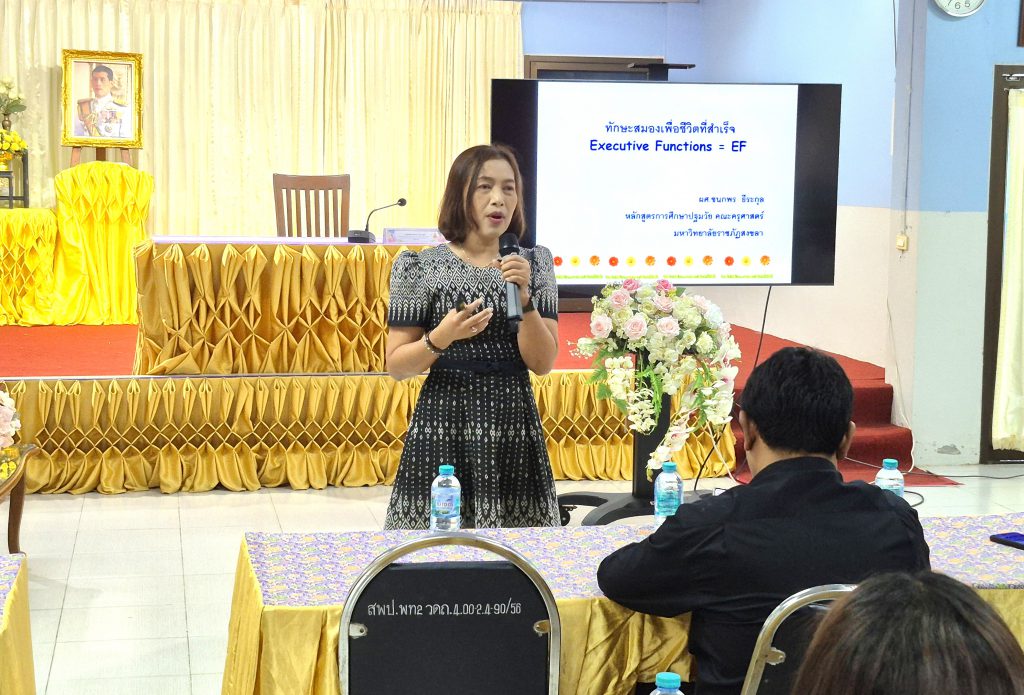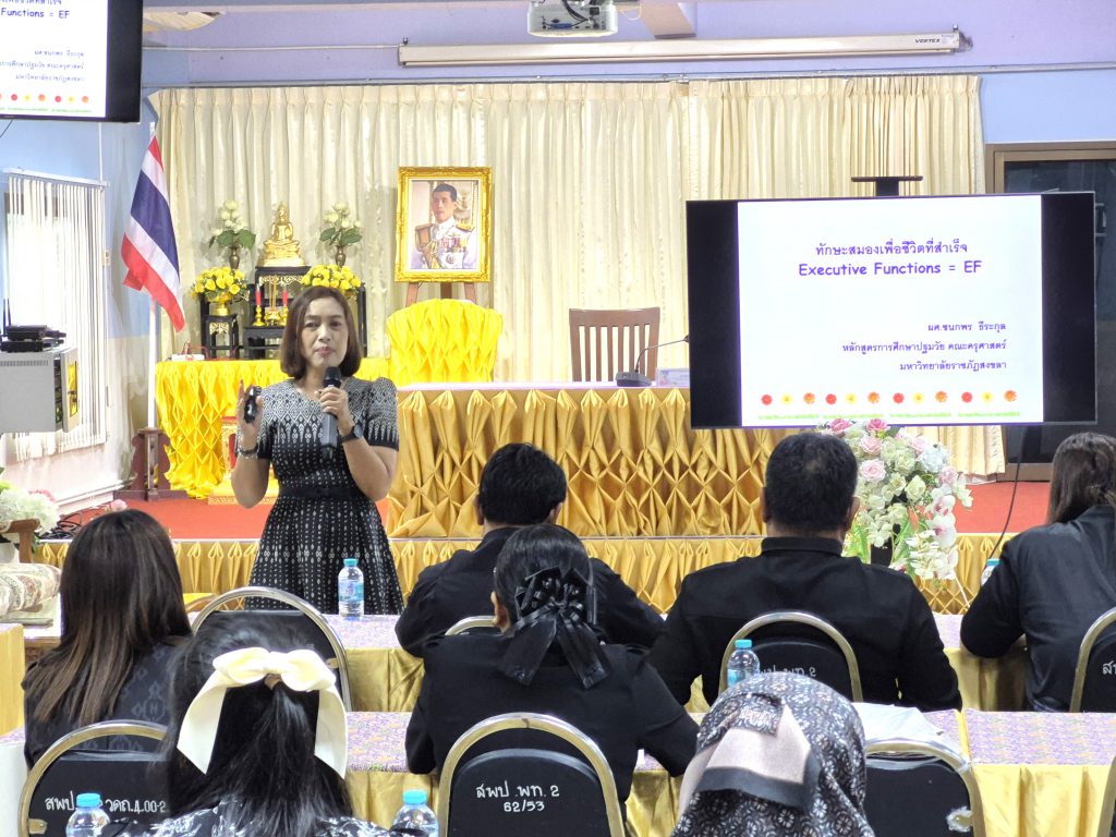 ได้รับเกียรติจาก ผู้ช่วยศาสตราจารย์ชนกพร ธีระกุล อาจารย์ประจำหลักสูตรการศึกษาปฐมวัย คณะครุศาสตร์ มหาวิทยาลัยราชภัฏสงขลา เป็นวิทยากร ถ่ายทอดองค์ความรู้และแนวทางปฏิบัติที่สามารถนำไปใช้ได้จริงในชั้นเรียน